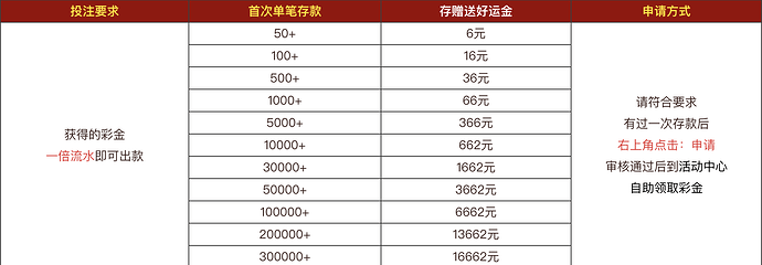 **例如:**会员首次存款8000元后:到【活动中心】提交对应金额申请,即可获得366元首存好运金!快通知您的朋友一起来!