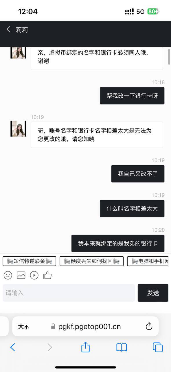PG娱乐城 该平台纯属黑台,银行卡绑定错误时拒绝提现,也不允许更改银行卡信息。随后又以 “注单异常” 为由,强制要求加 300 倍流水,彻头彻尾的骗局。充值多少,黑多少!