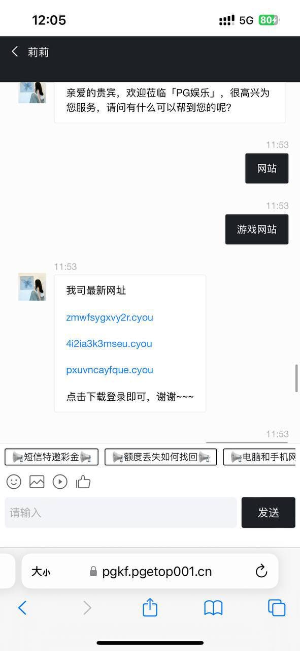 图片中显示的三个域名均指向该平台,名为 pg 娱乐城,实为短信诈骗平台。