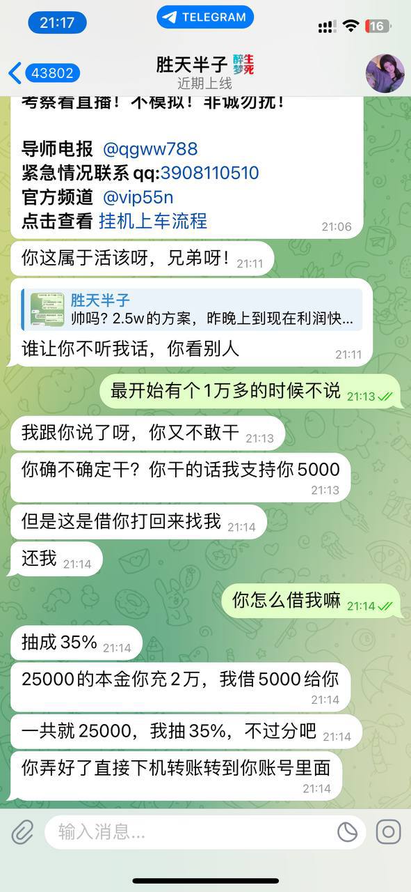 最后一步,他们抛出“百分百靠谱”的诱饵,说投2.5万一定能回血翻倍。我太想回本了,就信了……结果你猜怎么着?全被骗光!